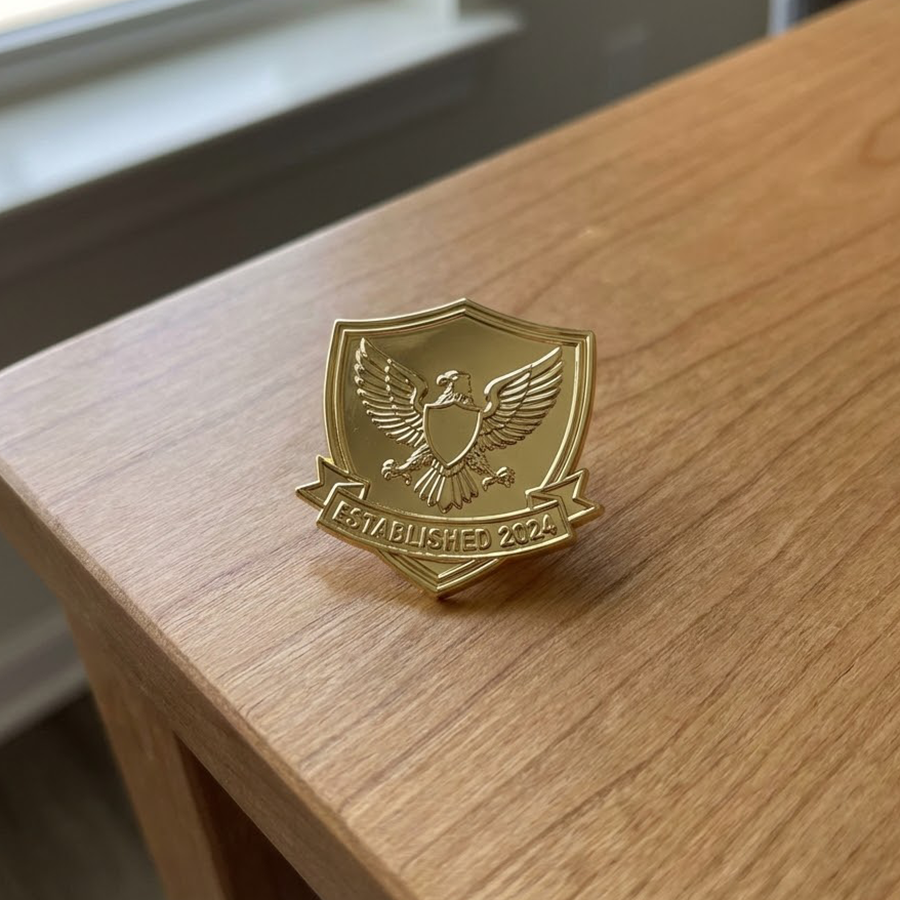 Timeless, jewelry-quality pins featuring an all-metal design. Without enamel coloring, these pins rely on raised polished lines and recessed textured backgrounds to create a sophisticated, high-contrast 3D relief effect.