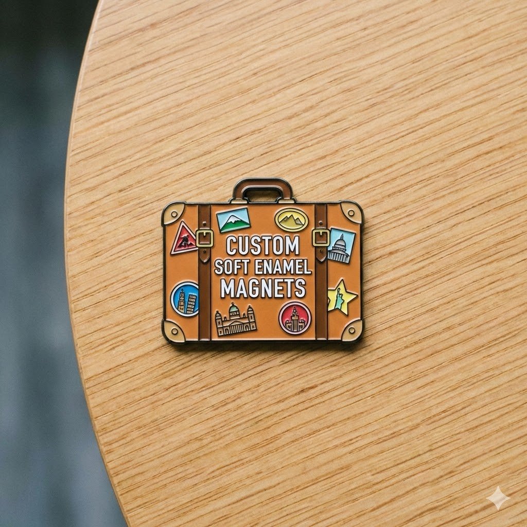 Durable metal fridge magnets with a classic, textured appeal. Featuring raised metal outlines and recessed colorful enamel, these magnets offer a high-quality tactile feel that stands out from standard flat plastic or printed alternatives.